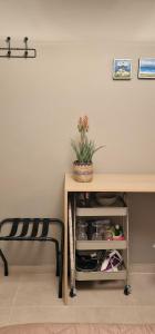 Tento apartmán v přízemí disponuje jednou ložnicí a koupelnou vybavenou sprchovým koutem, vysoušečem vlasů, šamponem a mýdlem. Dlažba doplňuje obytný prostor, který navazuje na terasu zařízenou venkovním posezením a jídelní částí. Hosté mohou využít bezplatné Wi-Fi po celém objektu i individuální nastavení teploty vytápění.