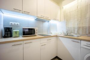 Апартаменты с одной спальней рассчитаны на размещение до четырёх гостей. Гостиная оборудована телевизором с плоским экраном и поддержкой стриминговых сервисов. Полностью оснащённая кухня включает микроволновую печь, тостер, холодильник, кофемашину и бокалы для вина. В ванной комнате предусмотрен душ и фен для волос. Для комфорта установлены отопительные приборы, постельное бельё и полотенца предоставляются.