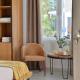 Le camere sono progettate per ridurre i rumori esterni e dispongono di cabine armadio o armadi. È disponibile il riscaldamento insieme a mobili da esterno per l’uso degli ospiti. L’accesso ai piani superiori avviene esclusivamente tramite scale. Ulteriori comfort includono ferro da stiro, spazio scrivania per lavoro, bottiglia d’acqua all’arrivo, deposito bagagli, servizi concierge alla reception e opzioni di pagamento senza contanti.