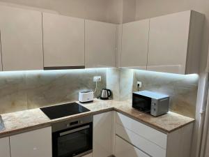 Il se compose d’un séjour équipé d’un canapé-lit et d’une télévision à écran plat. La cuisine est entièrement équipée avec un four, une bouilloire électrique, un réfrigérateur et des ustensiles culinaires. La salle de bains comprend une douche, un sèche-cheveux, des serviettes et présente un sol en carrelage ou marbre.