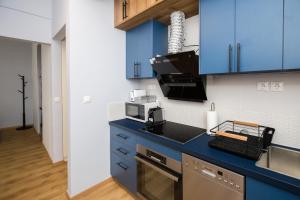 Апартаменты включают одну спальню и ванную комнату, а также полностью оборудованную кухню в отдельной гостиной зоне. К услугам гостей — балкон и такие удобства в номере, как стиральная машина.