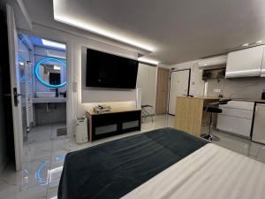Внутри предусмотрена одна спальня и ванная комната с душевой кабиной. Жилая зона включает раскладной диван, телевизор с плоским экраном, поддерживающий стриминговые сервисы и кабельное телевидение для развлечений. К услугам гостей полностью оборудованная мини-кухня и столовая зона. Для дополнительного комфорта обеспечена звукоизоляция, отопление, гипоаллергенные подушки, постельное бельё и полотенца, предоставляются мыло у раковины и в душе, а также одноразовые шапочки для душа.