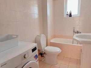 Cet appartement spacieux se compose de deux chambres et d'une salle de bains. Il dispose également d'une cuisine entièrement équipée, d'un coin repas, d'un balcon offrant une vue sur une rue calme ainsi que d'un espace salon. Les occupants peuvent prendre leurs repas en plein air tout en profitant de la vue sur la ville. Le divertissement est assuré par une télévision à écran plat et le Wi-Fi gratuit est accessible dans l’ensemble du logement.