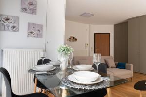 В состав апартаментов входит одна спальня и отдельная ванная комната с душем. Гостиная оборудована телевизором с плоским экраном, диваном и полностью оснащённой кухней с духовым шкафом, тостером, электрическим чайником и бокалами для вина. Для стирки предоставлена стиральная машина.
