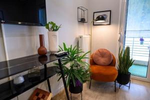 Apartmán disponuje jednou ložnicí s dlažbou nebo mramorovou podlahou a čerstvým ložním prádlem. Hosté mohou využít zábavu na televizoru s plochou obrazovkou vybaveném streamovacími službami, přičemž je k dispozici bezplatné Wi-Fi připojení v celém objektu. Plně vybavená kuchyně zahrnuje myčku nádobí, troubu, mikrovlnnou troubu, toustovač, pračku a jídelní kout pro pohodlí během pobytu. Šatna poskytuje dodatečný prostor pro pohodlné převlékání.