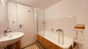 The spacious accommodation includes two bedrooms, a living room with a flat-screen TV, and an equipped kitchen with a toaster and fridge. The bathroom contains a bathtub, while bed linen, towels, laundry service, and an iron are provided for convenience. Guests can enjoy outdoor seating on the terrace or relax inside where Wi-Fi is available throughout.