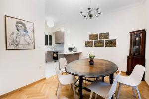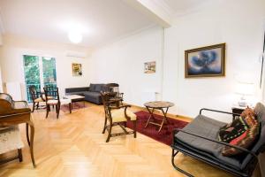 El amplio apartamento dispone de una cocina completamente equipada con lavavajillas, horno, microondas, placa vitrocerámica, frigorífico y cafetera. Los huéspedes pueden relajarse en el salón y disfrutar del entretenimiento en la televisión plana con canales por cable. El piso cuenta con suelo parquet en todas sus estancias y está diseñado para familias, incluyendo cunas disponibles bajo petición. Además, ofrece habitaciones insonorizadas con vistas a calles tranquilas.