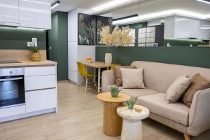 L’appartamento con una camera da letto dispone di una cucina completamente attrezzata con lavastoviglie, piano cottura, macchina per il caffè e calici da vino. L’area soggiorno è caratterizzata da una TV a schermo piatto con servizi di streaming e connessione WiFi gratuita in tutta la struttura. Il bagno è dotato sia di vasca che di doccia, insieme a prodotti per l’igiene come sapone e gel igienizzante per le mani. Per garantire il massimo comfort agli ospiti sono forniti biancheria da letto, asciugamani, cuscini in piuma e acqua in bottiglia.