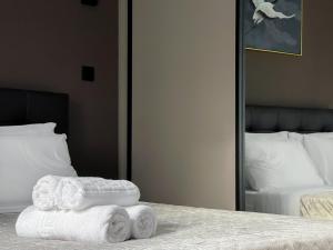 Uvnitř se nachází obývací část vybavená televizí s plochou obrazovkou a přístupem na balkon. Plně vybavená kuchyně umožňuje samostatné stravování, zatímco topení zajišťuje komfort i během chladnějších období. Na vyžádání je k dispozici dětská postýlka, díky níž je tento apartmán vhodný i pro rodiny.