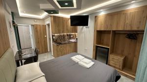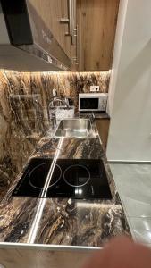 À l’intérieur, les hôtes disposent d’une cuisine entièrement équipée comprenant un four micro-ondes, un réfrigérateur ainsi qu’une kitchenette. L’espace nuit est pourvu d’un sol en carrelage ou marbre et comprend la climatisation, le chauffage ainsi qu’un dressing avec rangement. Le divertissement est assuré par une télévision à écran plat tandis que la connexion internet est disponible grâce au Wi-Fi offert dans tout l’immeuble.