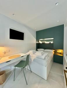 Součástí ubytování je ložnice vybavená polštáři bez peří a povlečením. K dispozici je koupelna se sadou ručníků, mýdlem, kondicionérem a fénem na vlasy. Hosté mohou využít streamovací služby na televizoru s plochou obrazovkou nebo si připravit jídlo ve plně vybavené kuchyni s ledničkou a kávovarem. Praktický pracovní stůl a šatní skříň zajišťují dostatek prostoru pro práci i úschovu věcí. Apartmán má soukromý vstup na venkovní terasu s výhledem do klidné ulice.