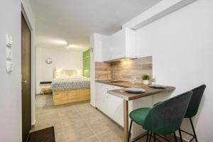 В апартаментах предусмотрена одна спальня, полностью оборудованная кухня и ванная комната с душем и предоставленным шампунем. Для комфорта гостей предусмотрены системы отопления и вентиляции.