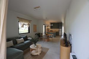 L’ampio appartamento con due camere da letto è caratterizzato da due bagni dotati di docce walk-in. Gli ospiti possono godere della vista sul giardino dalla terrazza adiacente alle aree living, che includono una TV a schermo piatto e una cucina attrezzata con lavastoviglie e forno. L’area pranzo esterna completa armoniosamente gli spazi interni, offrendo un’esperienza abitativa suggestiva.