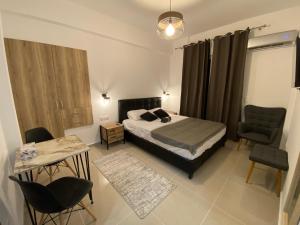 Каждое жилое пространство оснащено полностью оборудованной кухней с обеденной зоной, что позволяет гостям самостоятельно готовить блюда по своему усмотрению. В гостиной установлены плоскоэкранный телевизор и зона для отдыха, некоторые номера дополнены балконом. Напольные покрытия варьируются между плиткой, мрамором и ковровыми покрытиями, создавая разнообразие текстур во всем помещении.