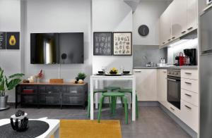 Questo appartamento con una camera da letto dispone di ambienti insonorizzati con pavimenti in piastrelle o marmo. La zona notte è caratterizzata dalla presenza del condizionatore d’aria. Il soggiorno offre un’accogliente area salotto con divano e uno spazio dedicato alla sala da pranzo, mentre l’intrattenimento comprende TV a schermo piatto e lettore Blu-ray. La cucina completamente attrezzata include forno, microonde, tostapane e tutti gli elettrodomestici necessari per la preparazione dei pasti.