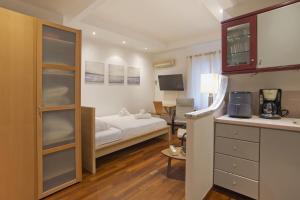 Обустроены апартаменты с одной отдельной спальней и полностью оборудованной мини-кухней, включающей микроволновую печь, тостер, электрический чайник и кухонную утварь. В собственной ванной комнате предусмотрен душ, для дополнительного комфорта предоставляются полотенца и постельное белье. Для хранения вещей предусмотрен шкаф.