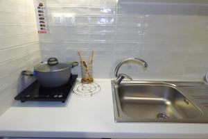 Обустроенная кухня оснащена тостером, холодильником, плитой и электрическим чайником. Гостиная оборудована телевизором с плоским экраном и столом. В ванной комнате имеются необходимые принадлежности: мыло, кондиционер для волос, полотенца, фен и отопление.