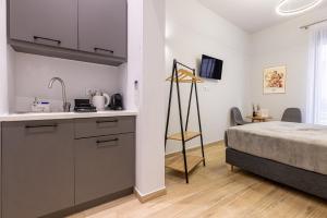 Апартаменты оборудованы отдельным входом и звукоизоляцией для обеспечения максимальной уединённости. В гостиной зоне имеется электрический чайник, кухонная утварь и бокалы для вина. Спальня оснащена открытыми вешалками для одежды, а ванная комната укомплектована шампунем, мылом и душевой кабиной.