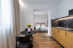 В каждом номере оборудована мини-кухня с холодильником, плитой, микроволновой печью, тостером, чайником и кофемашиной для самостоятельного приготовления пищи. Гостиная зона оформлена плиткой или мрамором и включает диван и рабочий стол. Для развлечений предоставлен телевизор с плоским экраном.