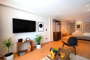 Просторный номер оборудован отдельным входом и звукоизоляцией. Внутри предусмотрена полностью оснащённая кухня с микроволновой печью, плитой, тостером, холодильником, кофемашиной, электрическим чайником и стиральной машиной. Гостиная зона включает раскладной диван и телевизор с плоским экраном с платными каналами и доступом к стриминговым платформам. В собственной ванной комнате предоставляются тапочки, кондиционер для волос и фен для удобства гостей.