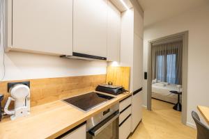 Apartmán se jednou ložnicí zahrnuje obývací pokoj s posezením a plně vybavenou kuchyň s myčkou na nádobí, troubou, lednicí, kávovarem a elektrickou konvicí. Koupelna je vybavena bezplatnými toaletními potřebami, pantoflemi, fénem a sprchovým koutem. Lůžkoviny jsou k dispozici.