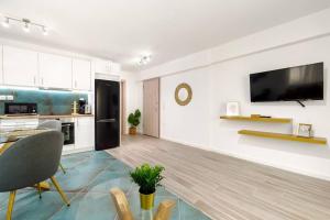 Guests can enjoy outdoor seating on the patio or relax in the garden areas. Additional conveniences include an elevator for upper-floor access, luggage storage at reception, a washing machine inside the apartment, and amenities such as bathrobes and non-feather pillows. The property welcomes pets and offers family-friendly options like high chairs upon request.