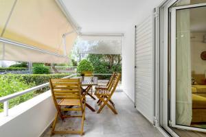 Sea and the city at Glyfada is a beachfront apartment located in Athens' Glyfada district, offering direct beach access and views of the inner courtyard. It features two bedrooms, a terrace overlooking the garden, and free WiFi throughout.