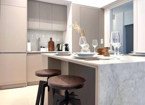 Les clients profitent sur place d’installations telles qu’un ascenseur et un service professionnel de ménage quotidien. Des caméras de sécurité sont installées à l’extérieur du bâtiment pour garantir la sûreté des lieux. Un café est accessible dans l’enceinte même, tandis que les points d’intérêt voisins incluent la place Omonia située à moins d’un kilomètre, la station de métro Omonia, le Théâtre national grec ainsi que le Musée cycladique.