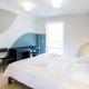 Each unit includes a desk, flat-screen TV, and free Wi-Fi. Some rooms feature balconies and all have individually controlled heating systems. The bathrooms come equipped with either a bathtub or shower, hair dryers, soap, and tamper-proof food packaging for meal deliveries to the room.
