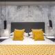 Each suite includes a private bathroom with a shower, equipped with toiletries and conditioner. Guests will find a flat-screen TV alongside seating that includes a sofa bed. Kitchen amenities consist of a microwave, toaster, coffee machine, fridge, kettle, and a safety deposit box is provided for valuables. Rooms come furnished with soundproofing measures and include linens, towels, slippers, feather or hypoallergenic pillows plus additional comforts like free bottled water.