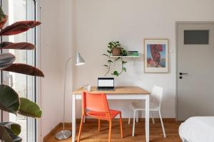 Студия оборудована системой отопления, отдельной спальней с подушками без пера, а также полностью оснащённой кухней с холодильником и плитой. Гостиная зона располагает круглосуточным доступом к интернету. В ванной комнате предусмотрена ванна. Для отдыха на свежем воздухе организована лаунж-зона у сада с видом из окна как во внутренний дворик, так и на город.