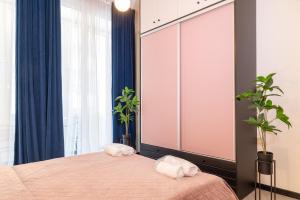 Апартаменты с одной спальней оборудованы системой отопления для холодного времени года. В жилой зоне предусмотрена система кондиционирования воздуха. Полностью оборудованная кухня оснащена духовкой, электрическим чайником и кухонной посудой для приготовления пищи. Дополнительное спальное место организовано на раскладном диване, предоставляются пуховые подушки и постельное бельё. Для развлечений установлен телевизор с плоским экраном и поддержкой потоковых сервисов вроде Netflix. Бесплатный Wi-Fi доступен как внутри апартаментов, так и в общих зонах.
