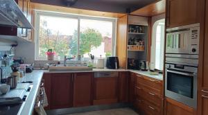 Apartmán se třemi ložnicemi a třemi koupelnami vybavenými vanou nebo sprchou disponuje také velkým obývacím pokojem s krbem, televizí s plochou obrazovkou a rozkládací pohovkou. Kuchyně je plně vybavená troubou i myčkou nádobí, což umožňuje pohodlné vaření i stolování. Hosté mohou relaxovat v posezení uvnitř nebo na sluneční terase s výhledem do zahrady a na klidnou ulici.
