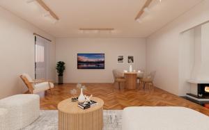 Просторные апартаменты включают две спальни и гостиную, оснащённую плоскоэкранным телевизором с спутниковыми каналами и стриминговыми сервисами. Для гостей предусмотрена полностью оборудованная кухня с варочной поверхностью, холодильником, тостером, стиральной машиной и необходимой посудой. В номере обеспечено отопление, для создания комфортной атмосферы применена звукоизоляция, предусмотрён отдельный вход. Камин украшает зону отдыха — идеальное место для наслаждения фруктами или вином.