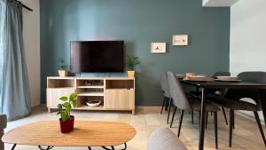 Внутри апартаментов предусмотрена полностью оборудованная кухня с духовкой, обеденная зона и кофемашина. В гостиной размещён телевизор с плоским экраном и поддержкой стриминговых сервисов. В ванной комнате установлена душевая кабина, а также предоставлены необходимые гигиенические принадлежности, включая антисептик для рук.