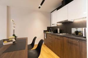 Apartmán disponuje dvěma ložnicemi, obývacím pokojem s rozkládací pohovkou a plně vybavenou kuchyní s mikrovlnnou troubou, kávovarem, ledničkou a žehličkou. Součástí je také soukromá koupelna se sprchovým koutem a bezplatnými toaletními potřebami včetně mýdla, šamponu a fénu. Lůžkoviny jsou k dispozici spolu s polštáři bez peří pro větší pohodlí.
