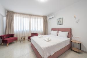 L’appartement se compose d’une chambre séparée d’un espace salon, avec une salle de bains privative dotée d’une baignoire, de produits de toilette gratuits et de shampoing. Les hôtes peuvent profiter de la terrasse ensoleillée sur le toit équipée de chaises longues et fauteuils pour se détendre. L’intérieur dispose de sols carrelés ou en marbre, d’une armoire pour le rangement, ainsi que d’équipements tels qu’un minibar, une machine à café, une télévision écran plat, des oreillers sans plume, des bouteilles d’eau et la climatisation réglable individuellement.