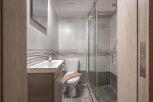 The apartment includes one bedroom and a bathroom with a shower. Guests can prepare meals in the fully equipped kitchen that contains a stovetop, microwave, fridge, coffee machine, electric kettle, wine glasses, and secure food containers. A flat-screen TV is available for entertainment while towels and bed linens are provided for convenience. The space also has heating both inside the room and in common areas.