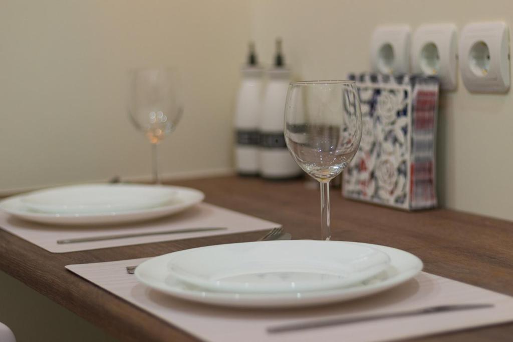 The apartment features one bedroom and a private bathroom equipped with either a bathtub or shower, soap, and shampoo. Guests can enjoy air conditioning throughout the space along with heating. The living area includes a fully equipped kitchen with a microwave and wine glasses, while entertainment is provided by a flat-screen TV. A balcony overlooks quiet street views, complementing the soundproof interior designed to enhance rest.