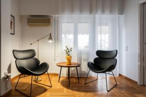 Situé à proximité des points clés comme le quartier commerçant rue Ermou et le bâtiment central de l’Université d’Athènes, l’appartement bénéficie également d’une isolation phonique assurant un séjour au calme. Parmi les services complémentaires figurent le ménage quotidien, l’enregistrement sans contact avec réception ouverte 24h/24, l’accès par ascenseur dans l’immeuble, le paiement sans espèces possible ainsi que des contenants sécurisés pour la livraison des repas. Un service navette relie également ce logement à l’aéroport Elefthérios-Venizélos situé à 28 km.