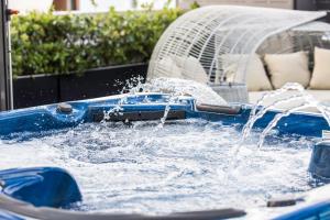 Questo spazioso attico vanta due bagni dotati di vasca idromassaggio e si apre su una terrazza con vista sulla piscina. Il soggiorno è arredato con TV a schermo piatto mentre la cucina è completamente attrezzata con forno e lavastoviglie per garantire il massimo comfort. L’appartamento dispone di isolamento acustico per maggiore privacy e ingresso privato.